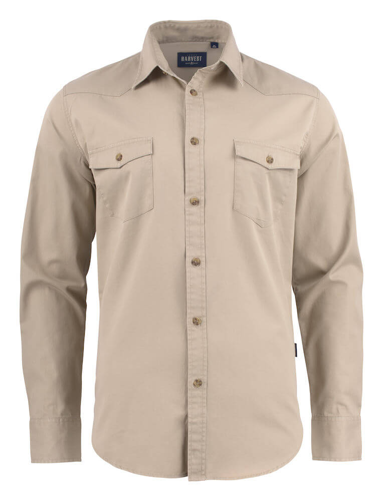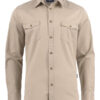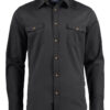 Unisex twill shirt featuring chest pockets with button flaps.